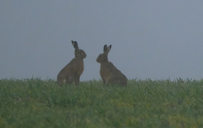 A misty Sunday walk on the South Downs. Hares were about, but some distance off.