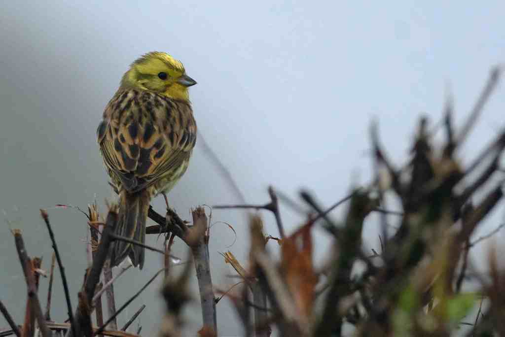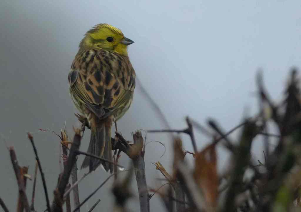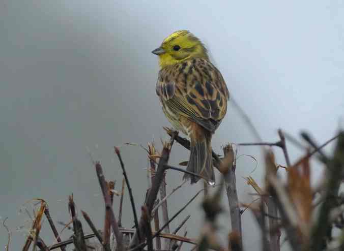 A splash of colour in the grey weather was brought by many Yellow Hammers.