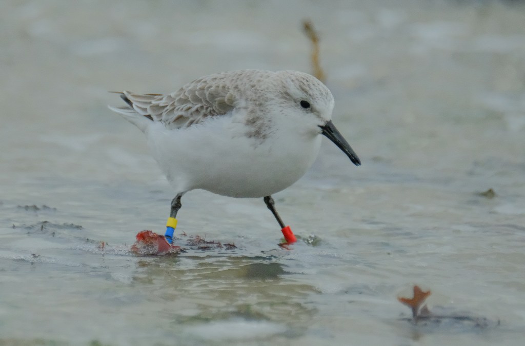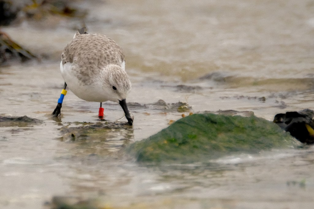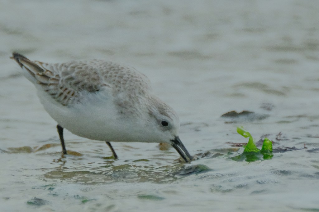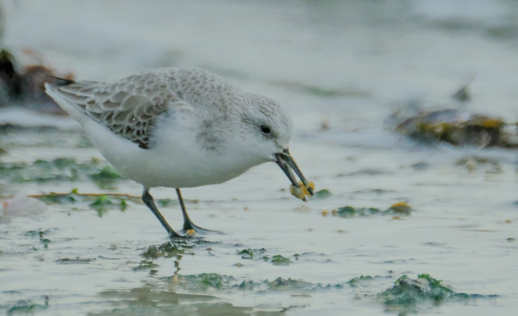 On the shore, Sanderlings were feeding at the water’s edge and out of the wind. Sitting down on the beach using one of the groynes as a windbreak I was able to take some pictures as the feed today clams seem to be on the menu.