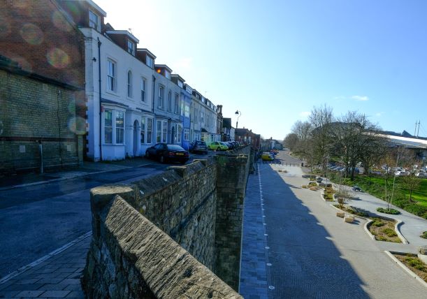 Views from the old walls. In the sea in the past came up to the walls but the land now is reclaimed. The views included some nice Victorian House on the walls and the modern shopping centre.