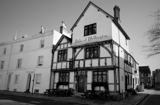 The Duke of Wellington pub in Bugle Street is a historic building with some old beams dating back to 1220.