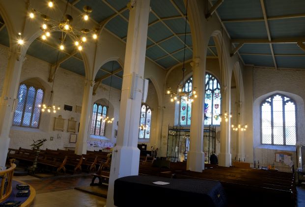 Much of Southampton was devastated by the German bombing in WW2. Although the other churches in the central town, Holy Rood and All Saints, were both destroyed in 1940, St. Michael’s escaped with only minor damage. It is said the spire was used by the German bombers as a landmark and their pilots were ordered not to hit it.