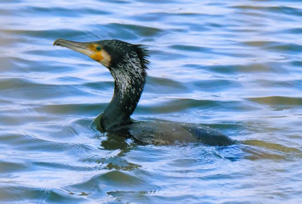 A Cormorant and a Little Grebe at Titchfield Haven Nation Nature reserve today.