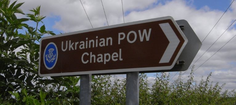 After leaving the town we saw a road sign to Ukrainian POW Chapel so we followed it to find out more. Away from the town were remains of a few huts (which numbered about 40 originally). One of these huts had been converted into a chapel by the prisoners.
