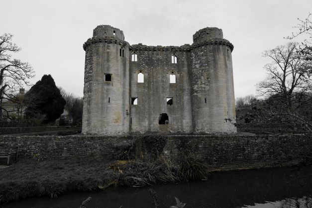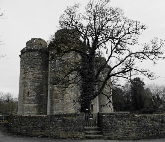 Nunney Castle in Somerset dates from the 1370s. It was built for Sir John de la Mare, a local knight. His castle was inspired by French castles seen on campaigns. The castle was modernised in the late 16th century, the castle was besieged and damaged by the Parliamentarians in 1645, during the English Civil War.