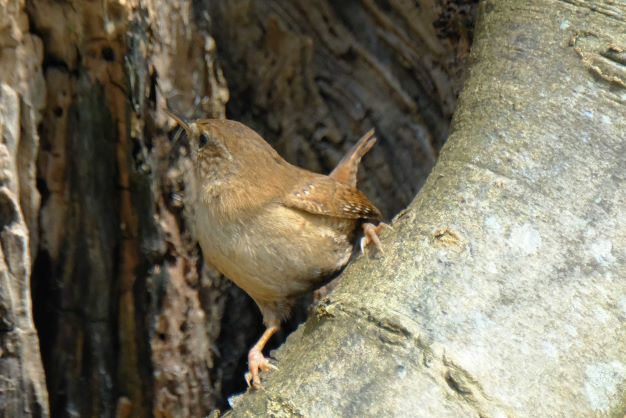 The wren is a tiny brown bird, it has a short, narrow tail that is sometimes cocked up vertically. For such a small bird it has a remarkably loud voice.