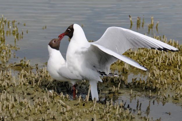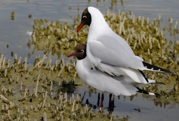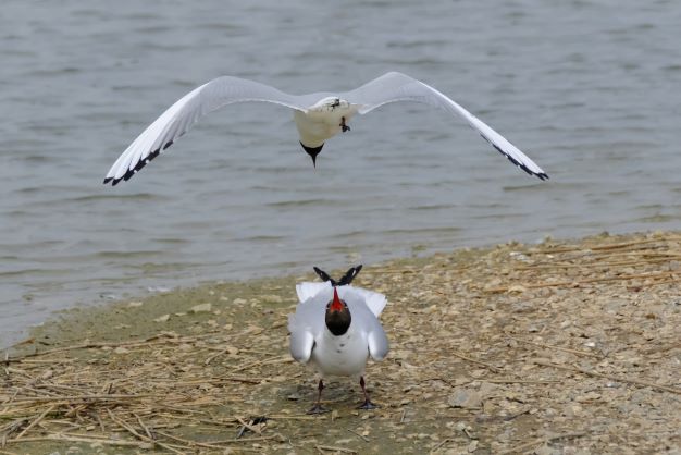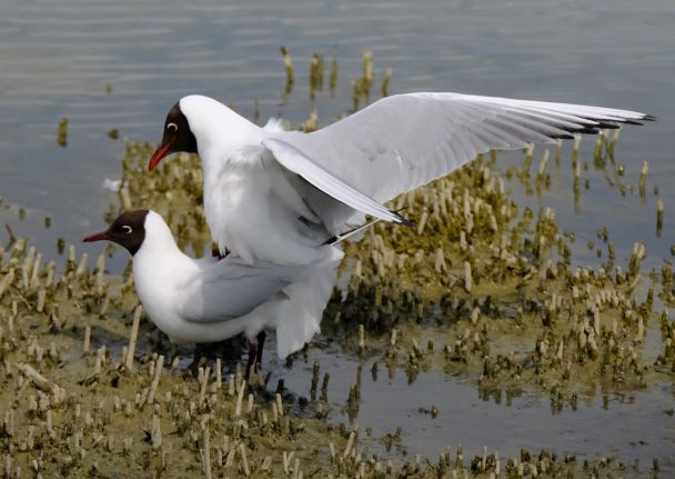 The black-headed gull is the UKs commonest small gull. The black-headed gull has actually a chocolate-brown head in the breeding season (In the winter their heads turn to mainly white ). I have posted pictures many times before as they are a common sight both on the coast and inland area where we live. There is a large breeding colony within Titchfield haven nature reserve. Now we are into April the colony is noisy with birds displaying pairing up and squabbling over nest spots. Many bird watchers will overlook this spectacle for rarer birds that visit our shores. Apart from the noise each year I look forward to this gull’s breeding season.