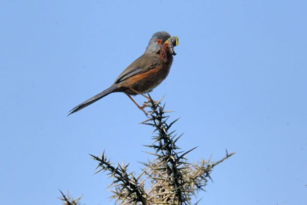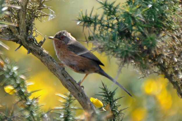The flowering Gorse bushes provided some good spots for the Rare Dartford Warbler. They nest deep in these bushes and the thorns give the nests vicious and effective protection from praditors.