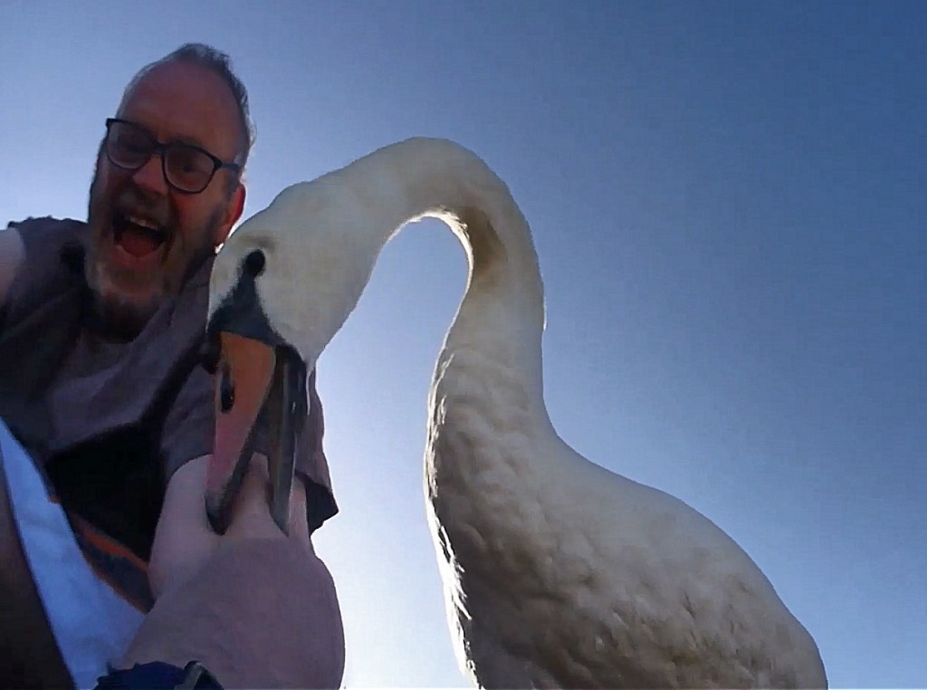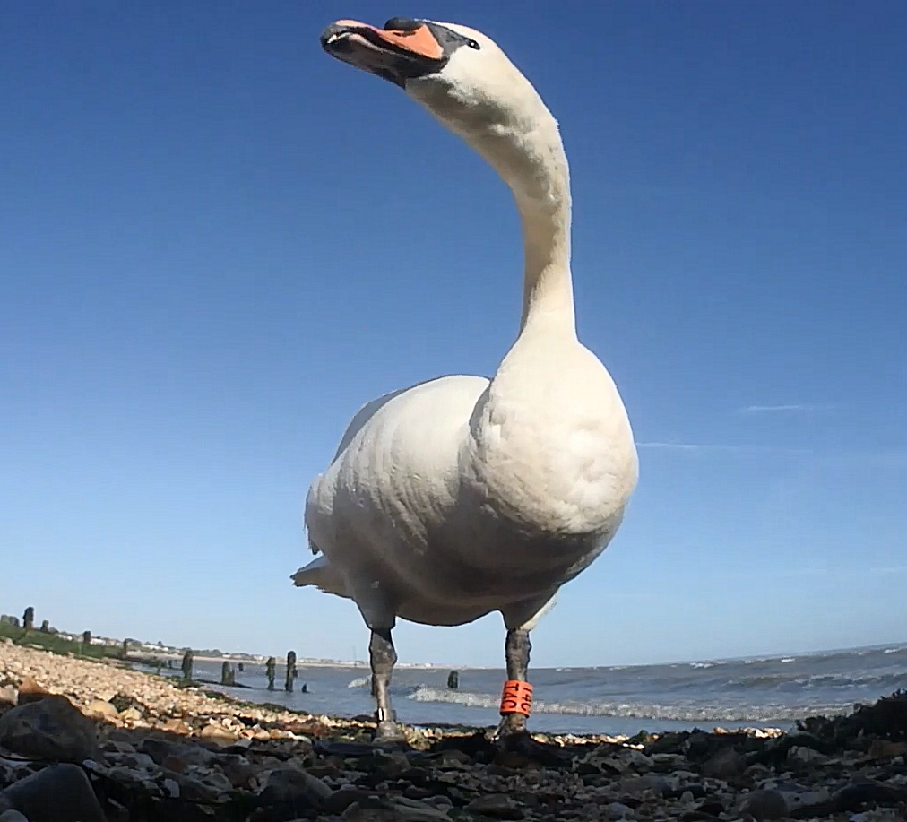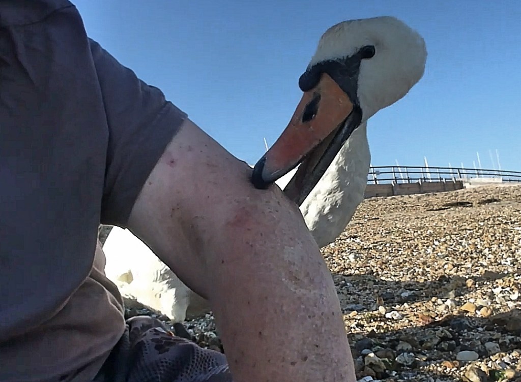 While sitting on the beach two of the local Mute Swans came out of the water to say hello so I popped back to the van to get some bird seed and my small underwater camera.