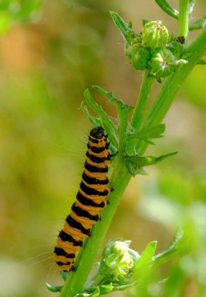 Black and orange or orange and black. In recent years I have only found a few Cinnabar caterpillars. When we were kids each Ragwort plant in the fields behind our family home had many of these colourful caterpillars. When l find one today I am transported back to the carefree days of my childhood in the 60s unaware of the Cold War, the Bay of Pigs and the Cuban Missle Crisis.