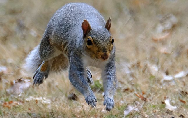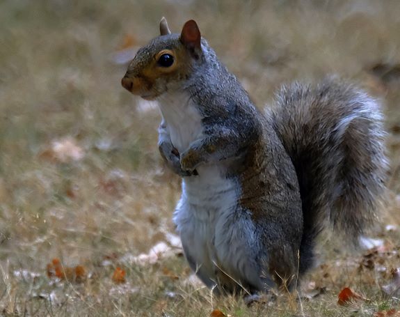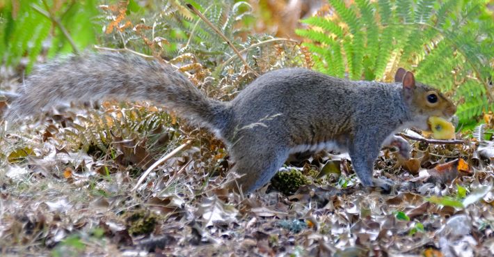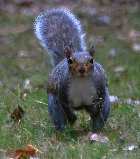 An apple core snatch and grab. Sometimes the temptation of getting close to a human for a tasty bit of food overcomes any fear. This Grey Squirrel was showing an interest in my apple while I was sitting on our van step. When I had finished eating it I dropped it on the grass within seconds he was on it.