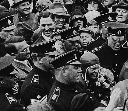 Southampton Police escort Earhart through the crowds after her arrival in the city.