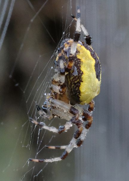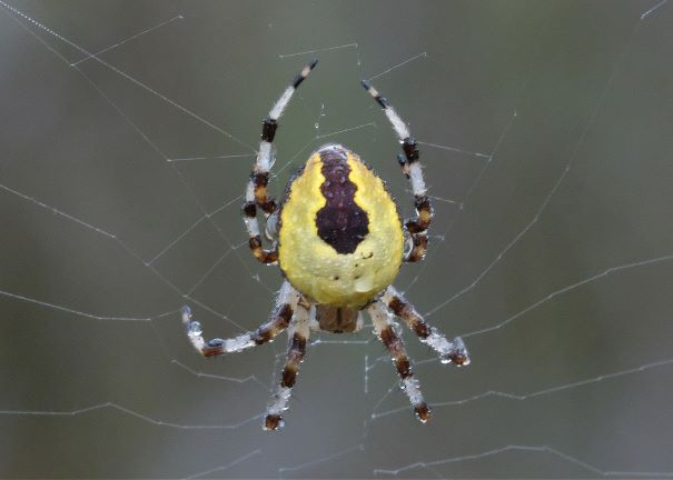 Marbled Orbweb Spider. This one is yellow I saw some previously that were white.