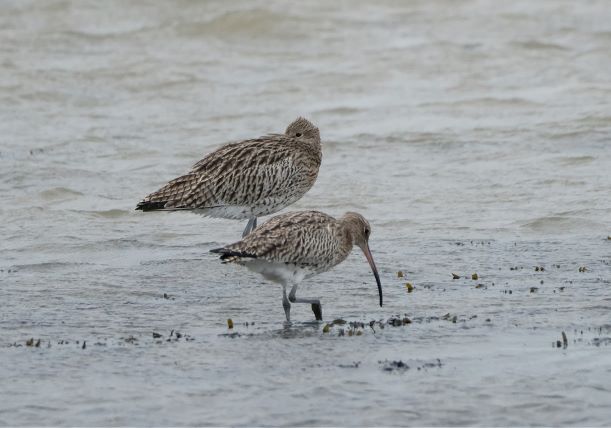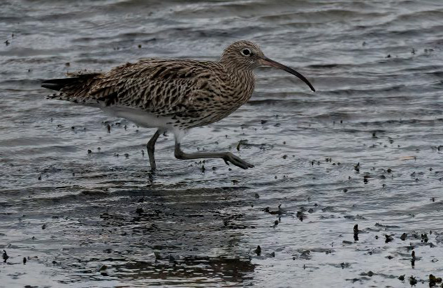 The curlew is the largest European wading bird. There were around 10 birds on the mudflats at the edge of the incoming tide catching small crabs at Lepe Beach on the edge of the New Forest. They also feed on worms, shellfish and shrimps. The UK breeding population is around 58,500 pairs and the wintering population increases to some 125,000 birds.