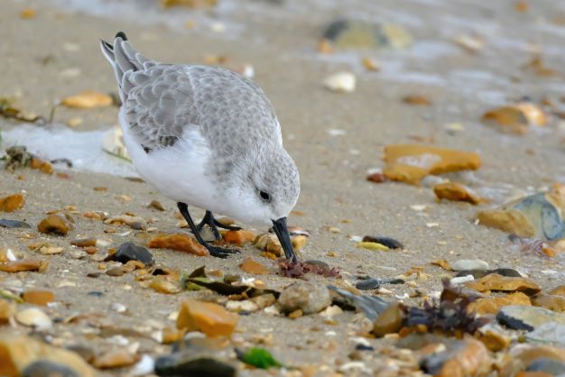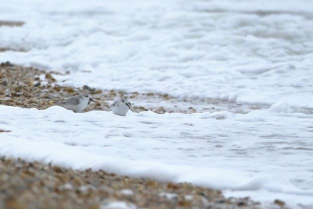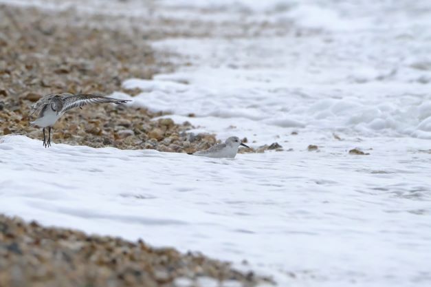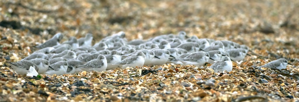 Sanderling numbers have started to increase on our coast as we move to the colder months. Over 60 were resting at high tide today. I always find them a joy to watch so I sit on the shingle they continue their routine and slowly come very close.
