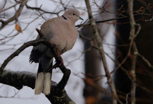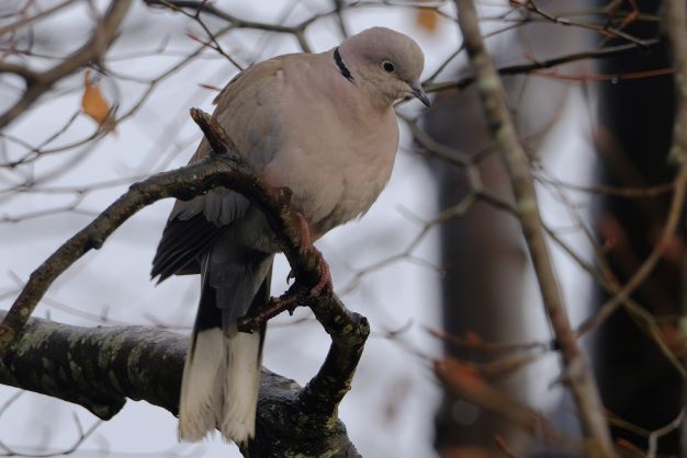 A small pigeon found on farmland and in woodland, parks and gardens across the UK they 1st bred in the 1950s, since their numbers have increased and the collared dove is now one of our most familiar garden birds. Collared doves feed on seeds and grain on the ground and are usually seen singularly or in pairs, although small flocks may form where there is enough food. The RSPB records there are now breeding:810,000 pairs across the UK.