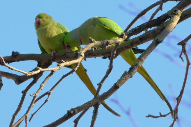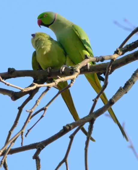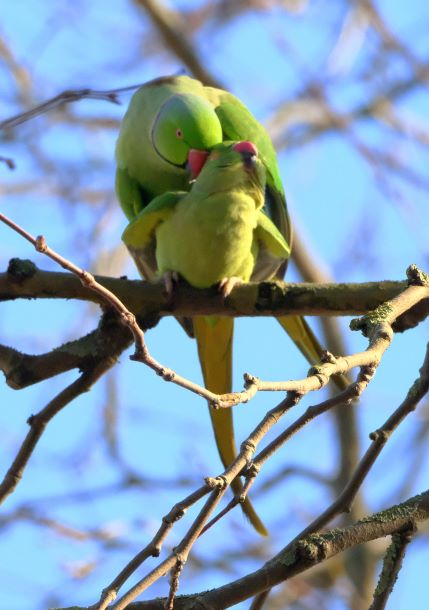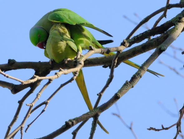 Update on local Paraketts. February 8, 2023February 8, 2023 / Andy Finnegan / 1 Comment Another return to one of Southampton’s parks to look for Ring-necked Paraketts. A least 2 pairs of Paraketts were checking out nest holes and one pair was mating.