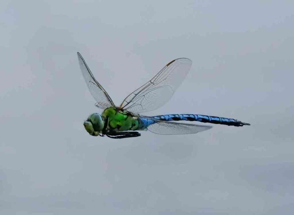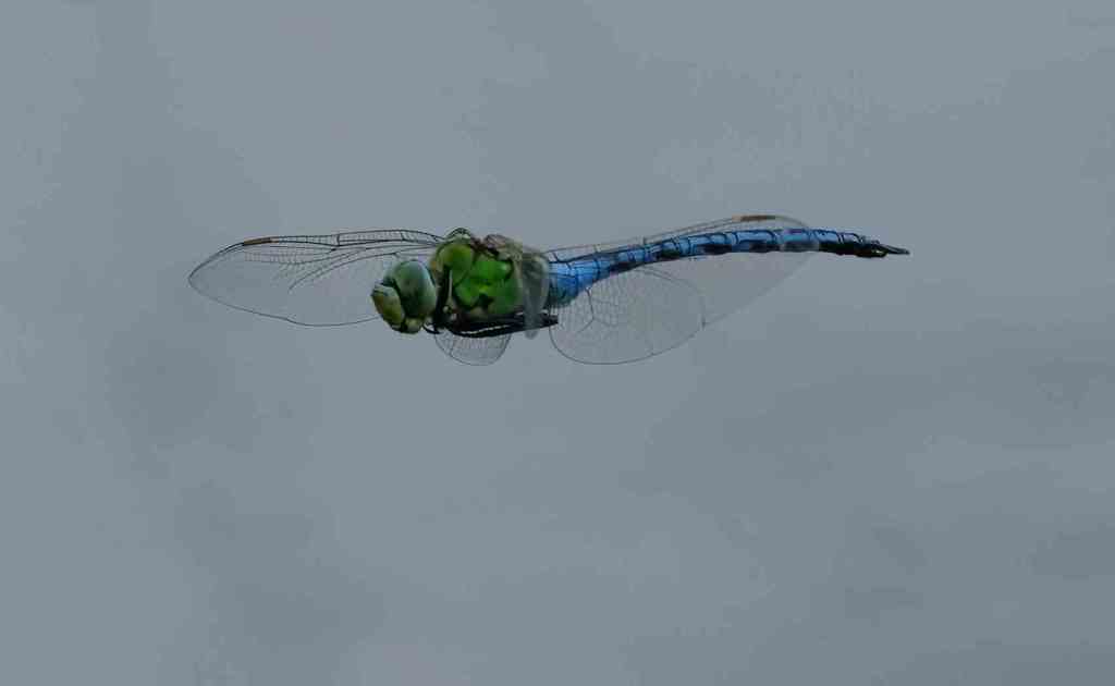 A very large and impressive dragonfly the Emperor Dragonfly. They are on the wing from June to August. It is a common species of large ponds and lakes, as well as waterways such as canals and ditches. The female lays her eggs in floating pondweed. One of the largest dragonfly species in Europe, the emperor dragonfly flies up high to look for insect prey, such as butterflies and chaser dragonflies. It catches its prey in mid-air and may eat it on the wing.