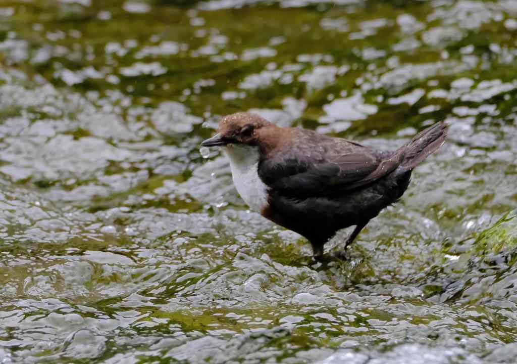 We have been away for a few days on Exmoor in the campervan. An objective of our trip was to see if I could find some Dippers. Dippers are a short-tailed, plump birds found on fast-flowing rivers and streams. When perched on a rock it habitually bobs up and down and frequently cocks its tail. They can be seen bobbing up and down on a stone in the fast-flowing river. They feed on underwater insects by walking straight into, and under, the water.