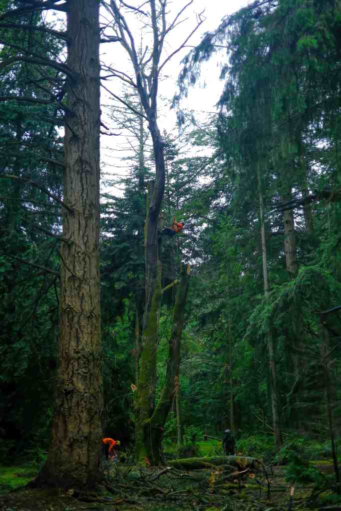 Trees that can be seen include giant redwoods and Douglas firs. In fact, the two tallest trees of the New Forest are here, a pair of redwoods standing on each side of an open grassy ride.