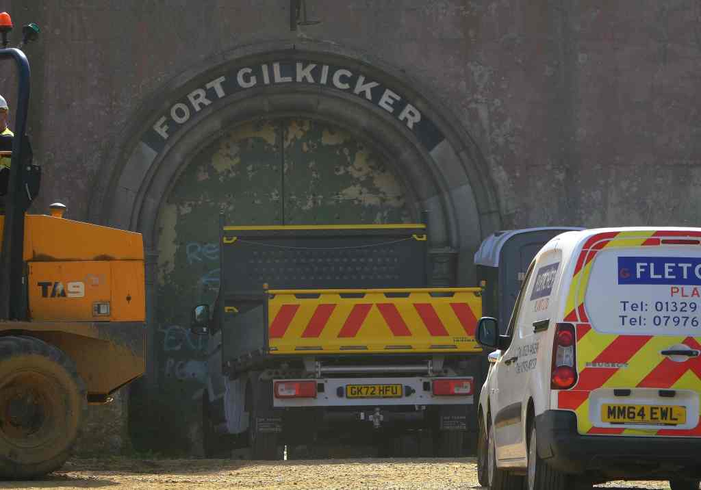Today we walked out to Fort Gilkicker. The redevelopment of the site is underway. The current planning permission is for Gilkicker to be restored and converted into 22 townhouses in the gun casemates plus four flats in the former barracks. Estimates of the cost of doing this are between £15 and £20 million. The site was bought for £1,386,000. Given the sums of money to restore/save this Historical Fort such a project could only be undertaken by a commercial redevelopment. Within the plans I understand one of the outer buildings will be made into a cafe with historical displays about the fort.