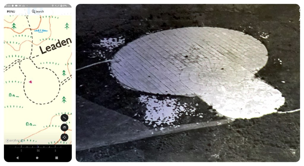 The shape of the target is visible from the ground the concrete wall around the target was removed for construction materials in the 1970’s
