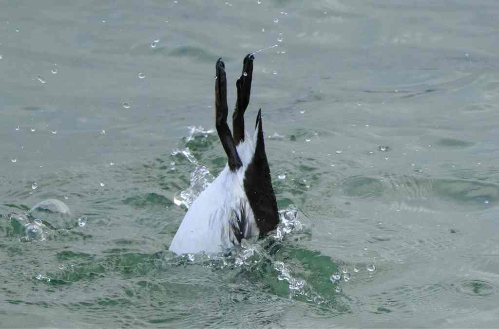 A surprise sighting was a lone Giullemott fishing off the end of Town Quay. A bird I have seen often along our coasts but only in areas where there are stretches of steep cliffs. Considered a common bird and found in large breeding colonies. They come to land only to nest, spending the rest of their lives at sea.
