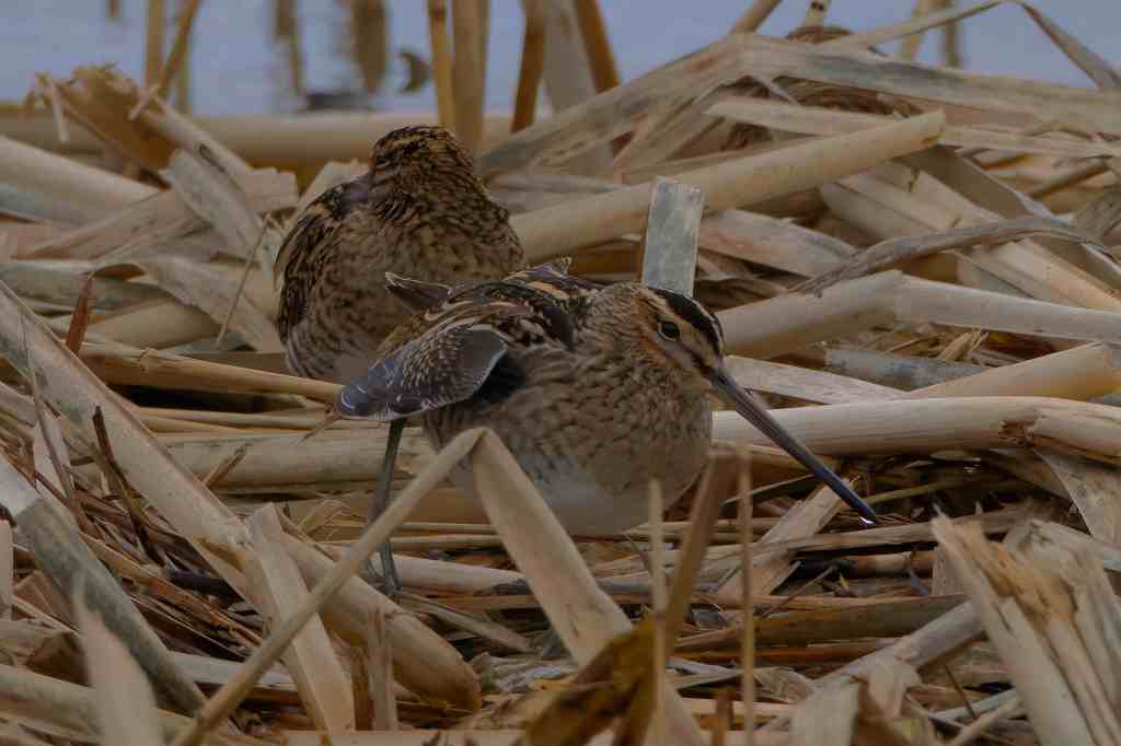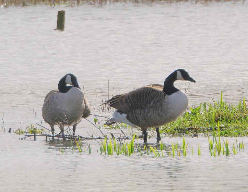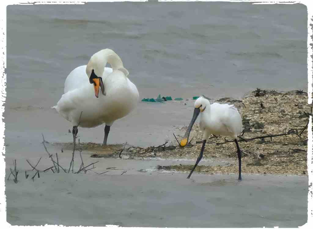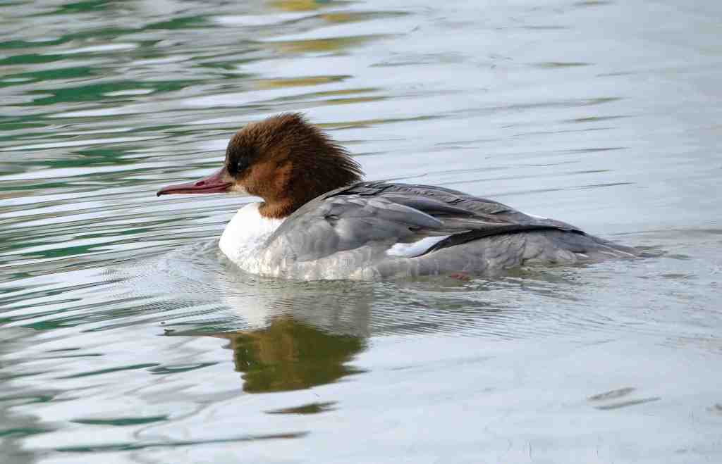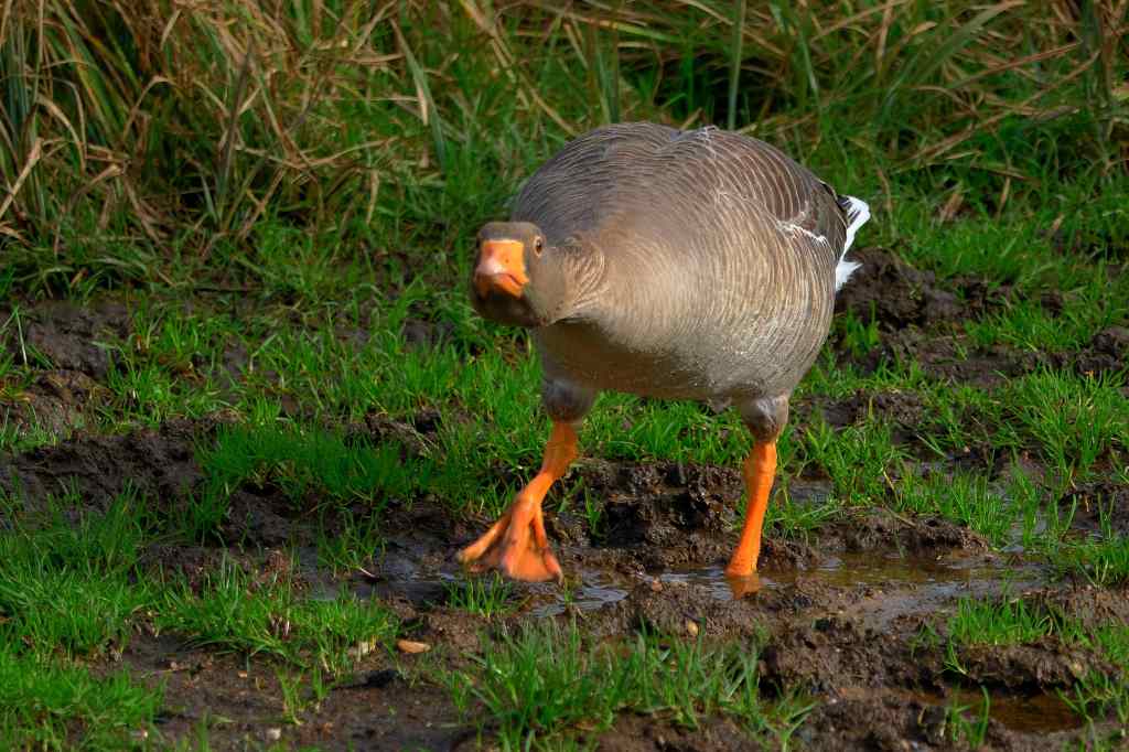 Mandarin Ducks were introduced from the Far East, They escaped, or were deliberately released, from captivity in the UK. A rather shy bird, often seen hiding beneath overhanging bushes, they form small flocks. The male bird has very elaborate and decorative plumage with distinctive orange feathers on the side of the face, a purple chest, and large orange feathers which look like small sails on its back. The female is not brightly coloured, with a grey head, white stripe behind the eye, brown back, and mottled lower sides. There was a flock of 10 birds today on the pond I visited today {the most I have seen there.}