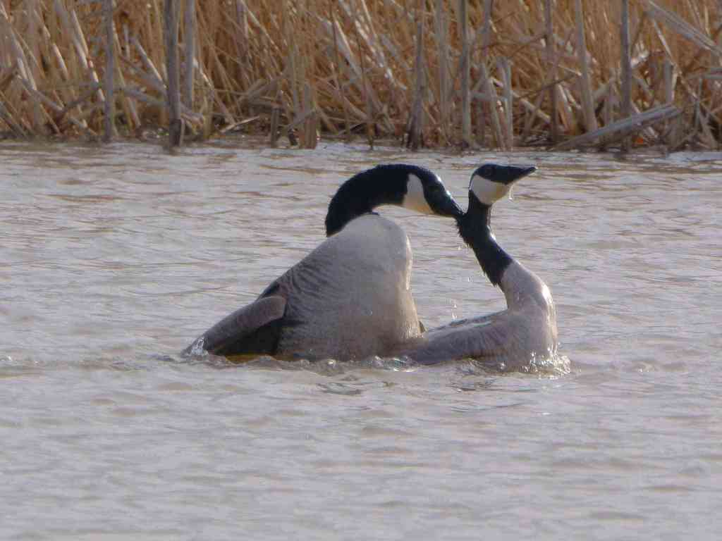 These ducks nest in holes in trees, sometimes high up and a long way from the water. After the ducklings hatch, the female will coax the young to jump from the nest. Once they have left the tree make their way back to the water. The Drake will return to the family and help to protect the ducklings