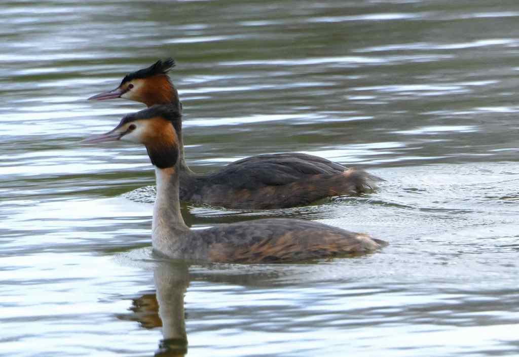 Great Crested Grebes . 6 individual birds spotted on a local fishing lake, one pair have nested and eggs are in the nest.