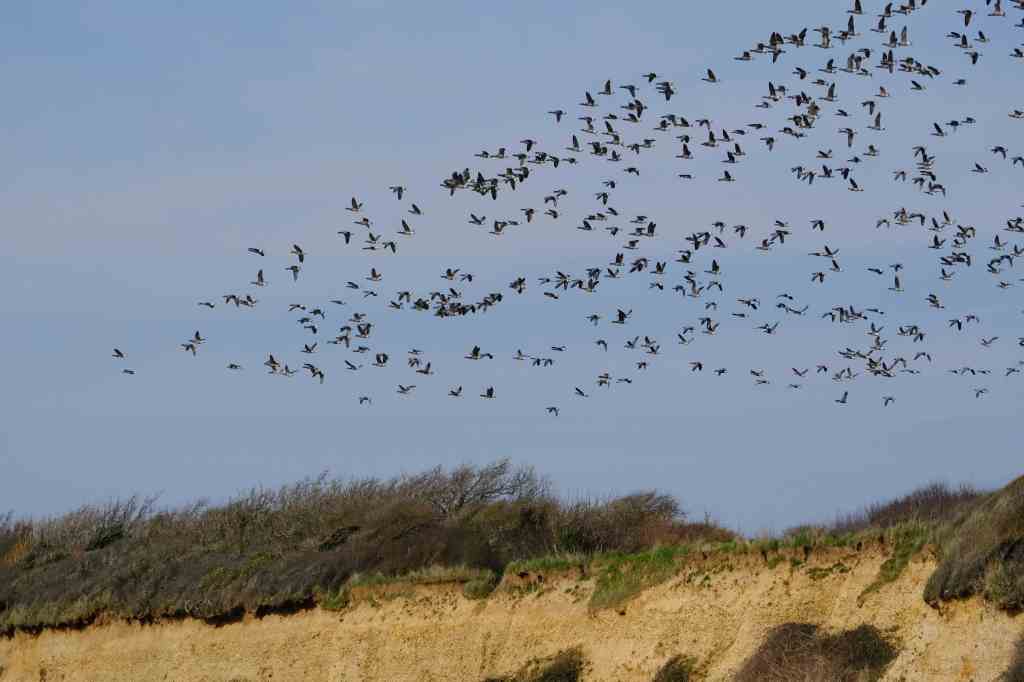 Soon these birds will be leaving our shores for their breeding grounds they have wintered here in the UK due to our milder winter. There are two populations those with dark bellies we get here, while those with pale bellies can be found in the North East. Brent geese gather in large flocks of hundreds of birds ready to return North to nest in northern Russia and Siberia. Unlike Canada geese, they do not fly in tight ‘skeins’ (V-s)