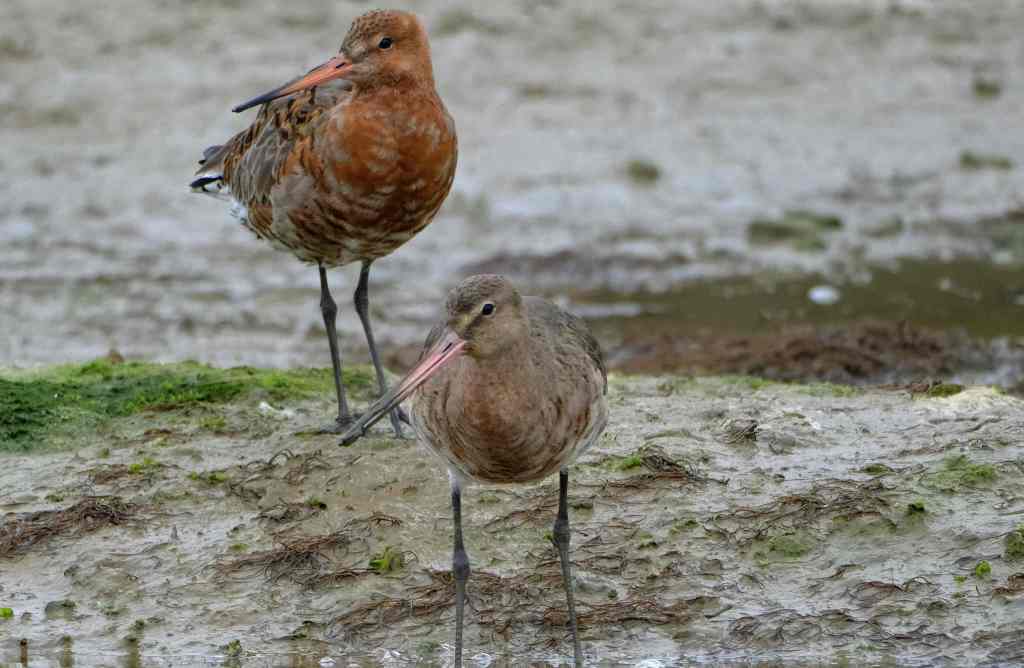 Black-tailed Godwits – these are a large wader they are a Schedule 1 species. In summer, they have bright orangey-brown chests and bellies, while in winter they’re more greyish-brown. The 1st picture shows how camouflaged these birds are despite appearing very colourful.