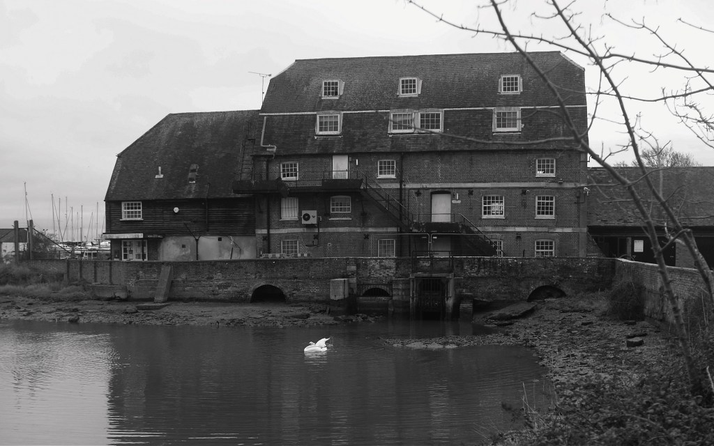A Little Egret in the Mill Pond at Ashlett Mill on Southampton Water.