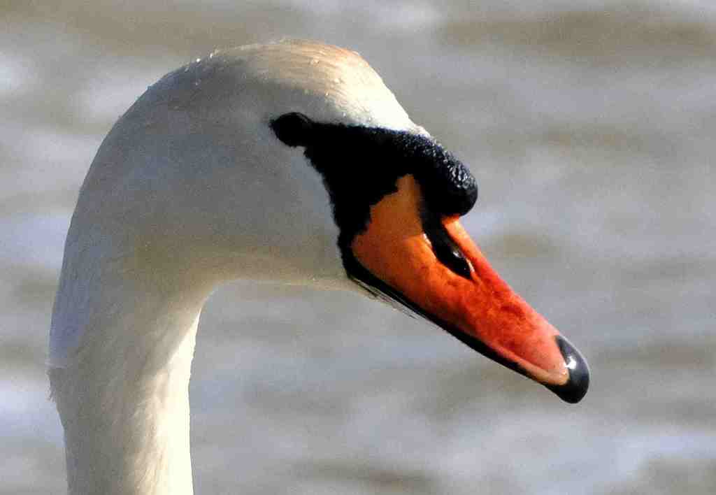 Mute Swan in the choppy swell off Meon Beach Hampshire.