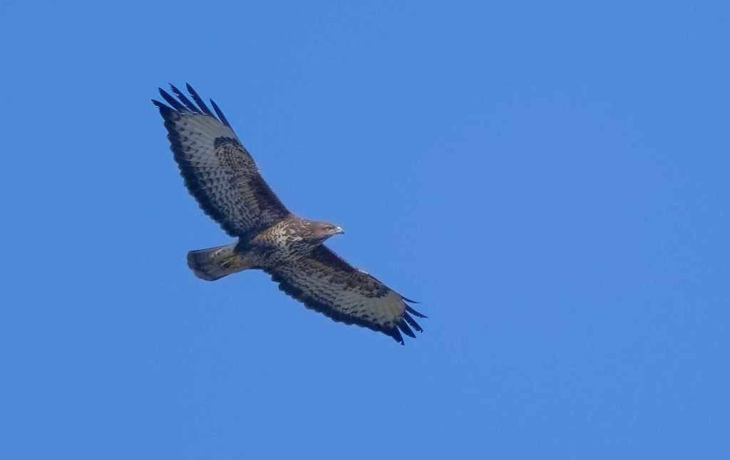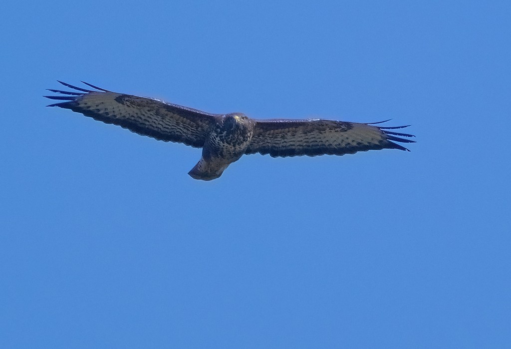 4 Buzzards were circling – I have noticed these high soring groups of Buzzards group together at the start of the breeding season the 4 birds were soon joined by 2 more. 6 was quite a sight. 50 years ago to see a Buzzard I would have to travel to Exmoor in the West Country to see a Buzzard. These large birds of prey have quadrupled in number since 1970. Their wingspan is around 4 feet.