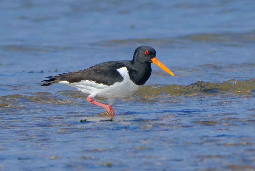 When the tide is in the Oystercatchers roost on the island within Titchfield Haven Nature Reserve. As the tide starts to fall they take off and move out to the beach and follow the tide as it goes out. When the tide turns and starts to come in they make their way back to the reserve. Without looking at the tide table I knew the tide was going out as when I arrived the Oystercatchers were flying out.