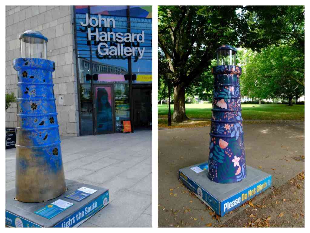 I revisited Southampton City yesterday to see more of the “Light the South art trail”. A public art event consisting of 40 painted lighthouse sculptures each standing 8ft tall. {there will be a further 30 mini lighthouses.} The art trail is to raise funds for Southampton Hospital Charity.