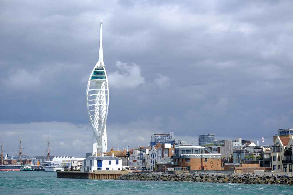 The Spinnaker Tower is a 170-metre (560 ft) observation tower A landmark it is the centrepiece of the redevelopment of Portsmouth Harbour, Its building was supported by a National Lottery grant. there are viewing platforms near the top.