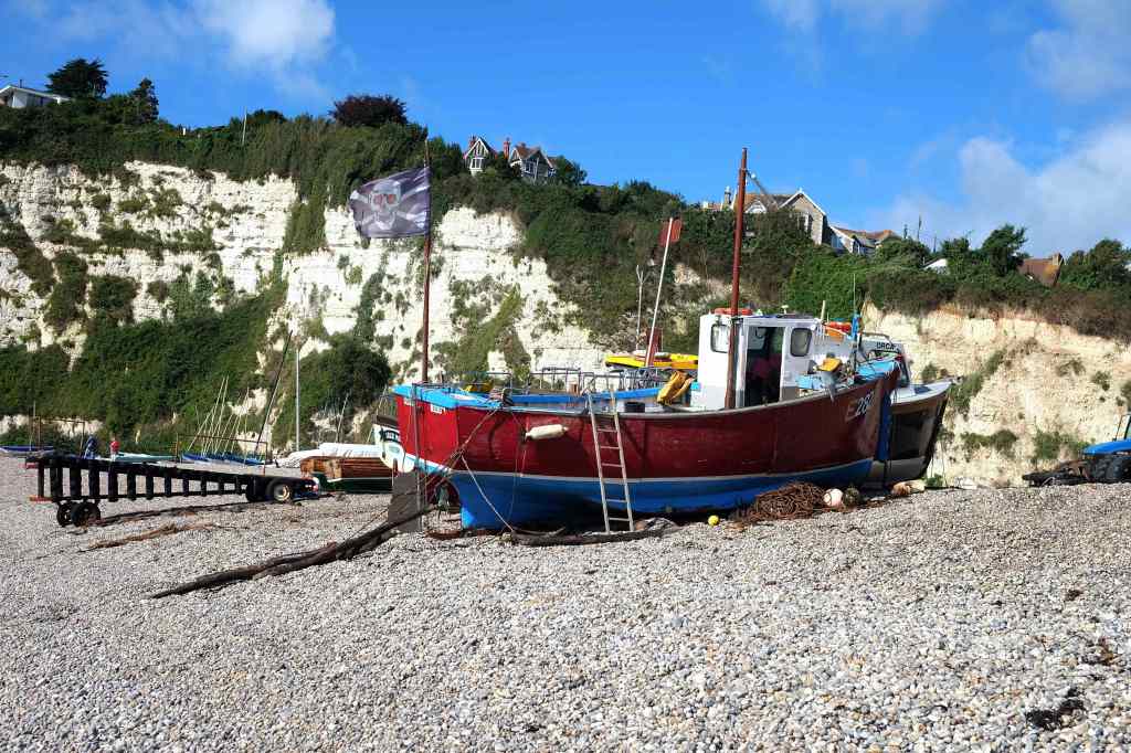 On the South Devon coast is a small smugglers’ cove with a shingle beach nestled beneath Beer head. A small beach-launched fishing fleet operates and sells fresh fish in a small shop just above the high water mark.