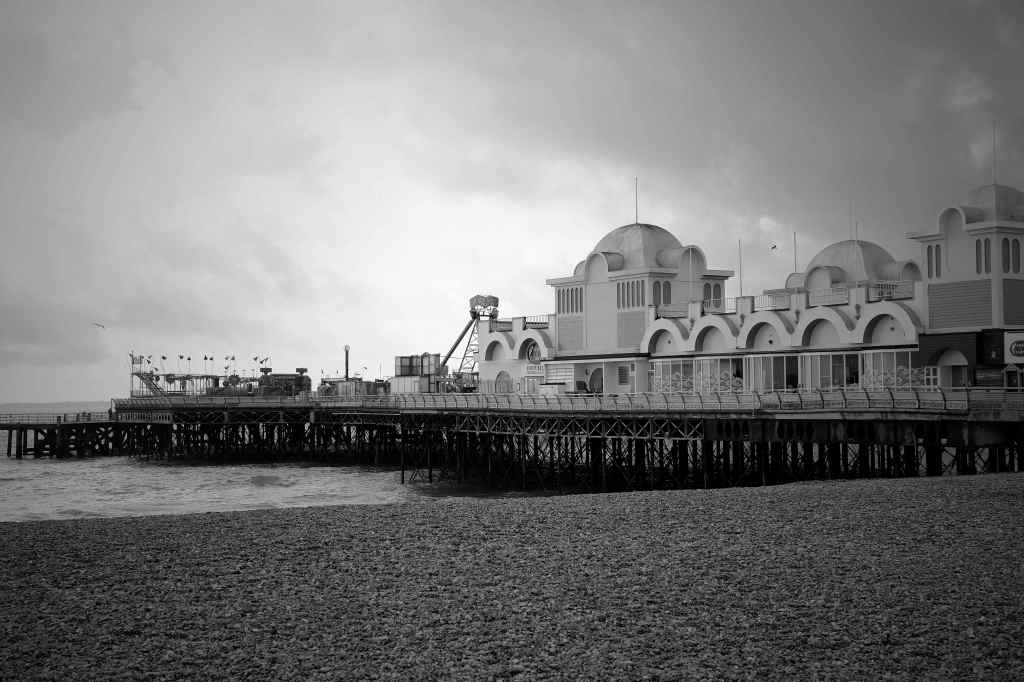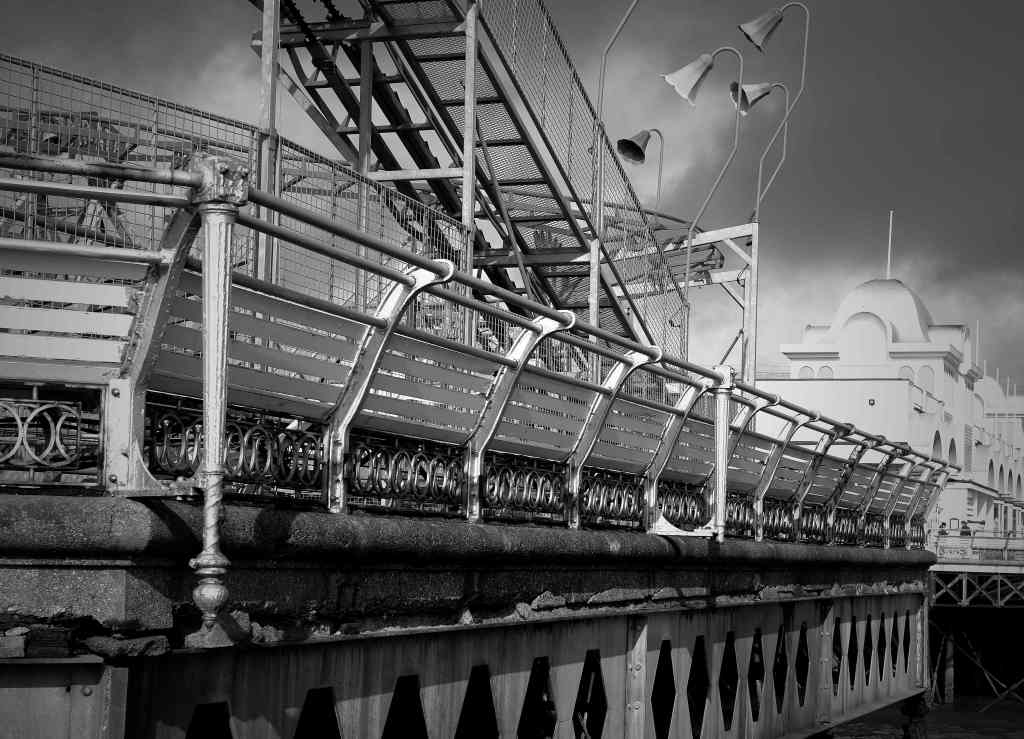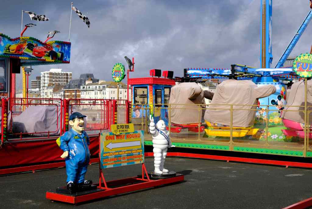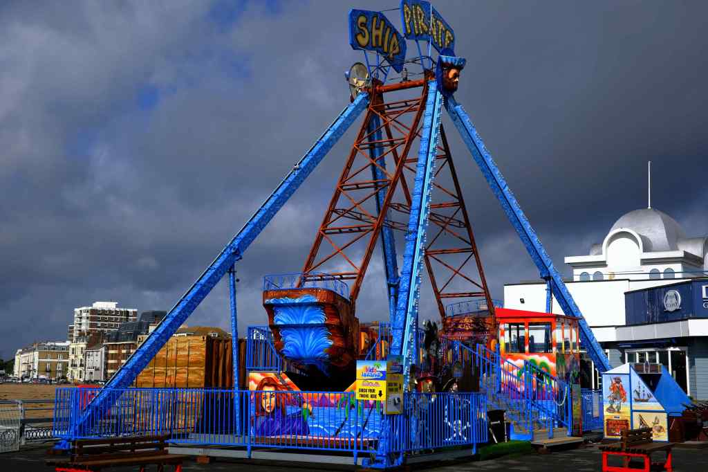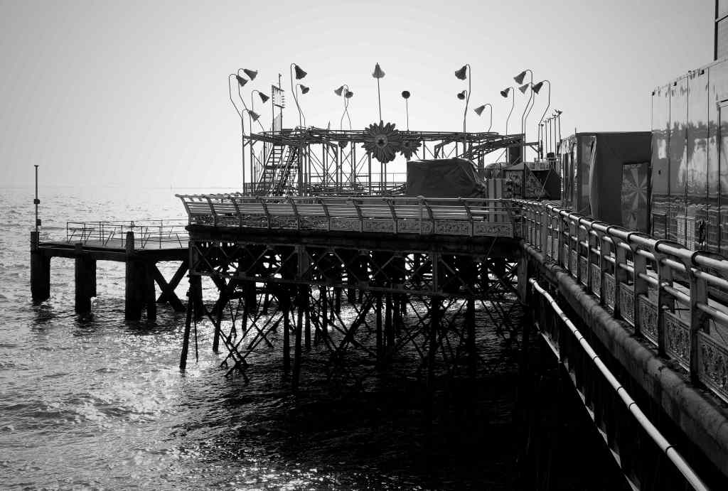 End of the pier and the end of the season Southsea Hampshire. The people have gone home the lights are turned off and the paint has faded.