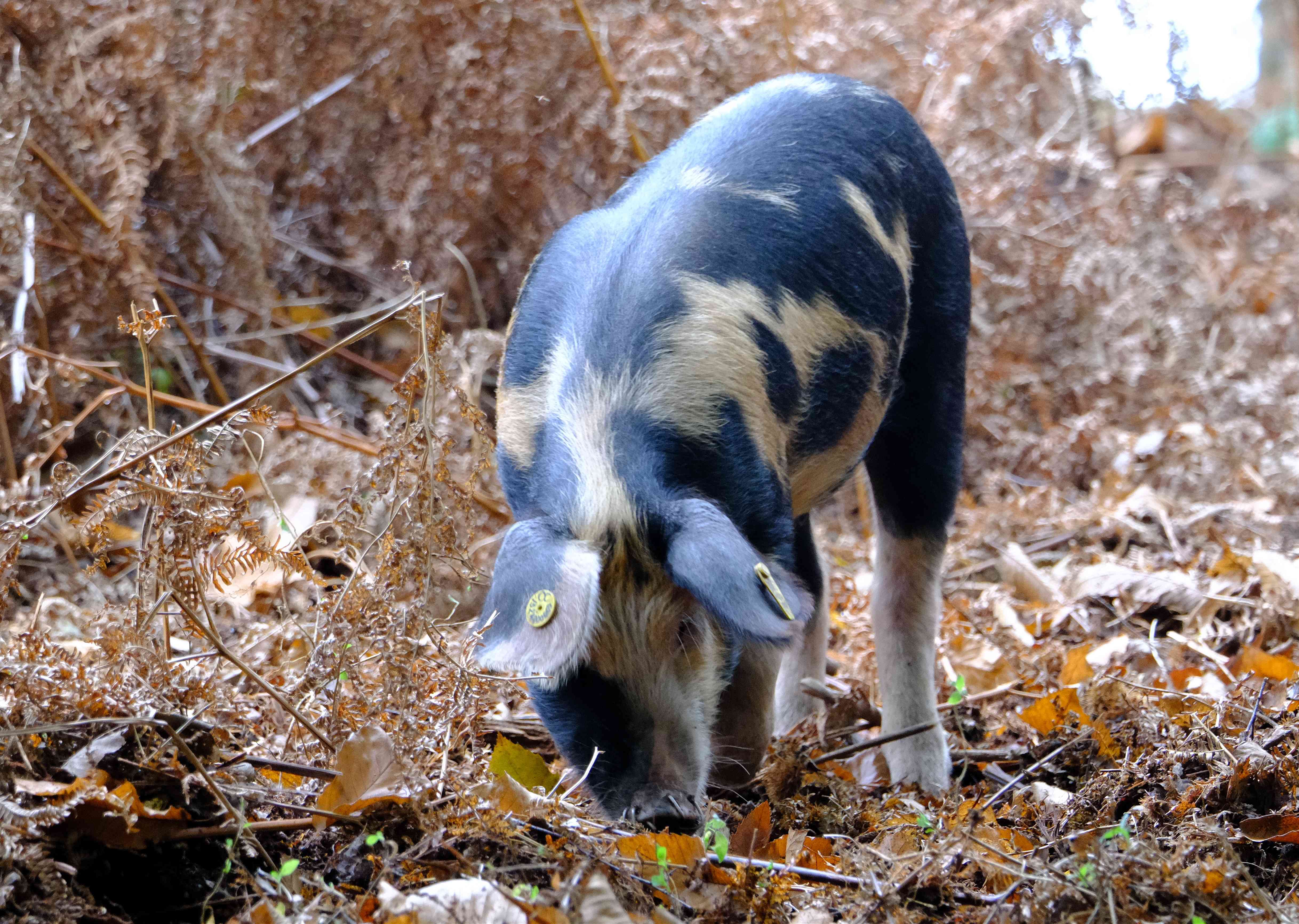 The pigs are released into the forest to eat fallen acorns, beech mast, chestnuts, and other nuts. Green acorns are poisonous to New Forest ponies and cattle, that roam the forest.