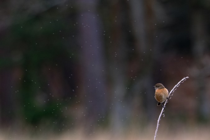 Stonechats mainly eat insects, but they also eat seeds and fruits, especially in the colder periods when insects are scarce.