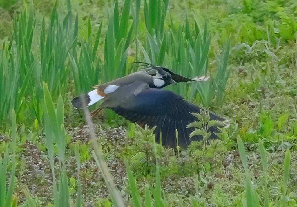 One Lapwing was sitting in the grass, and two others were flying /displaying just over her head. My interpretation was that they were two males trying to impress. The mating season has started in the wetlands.