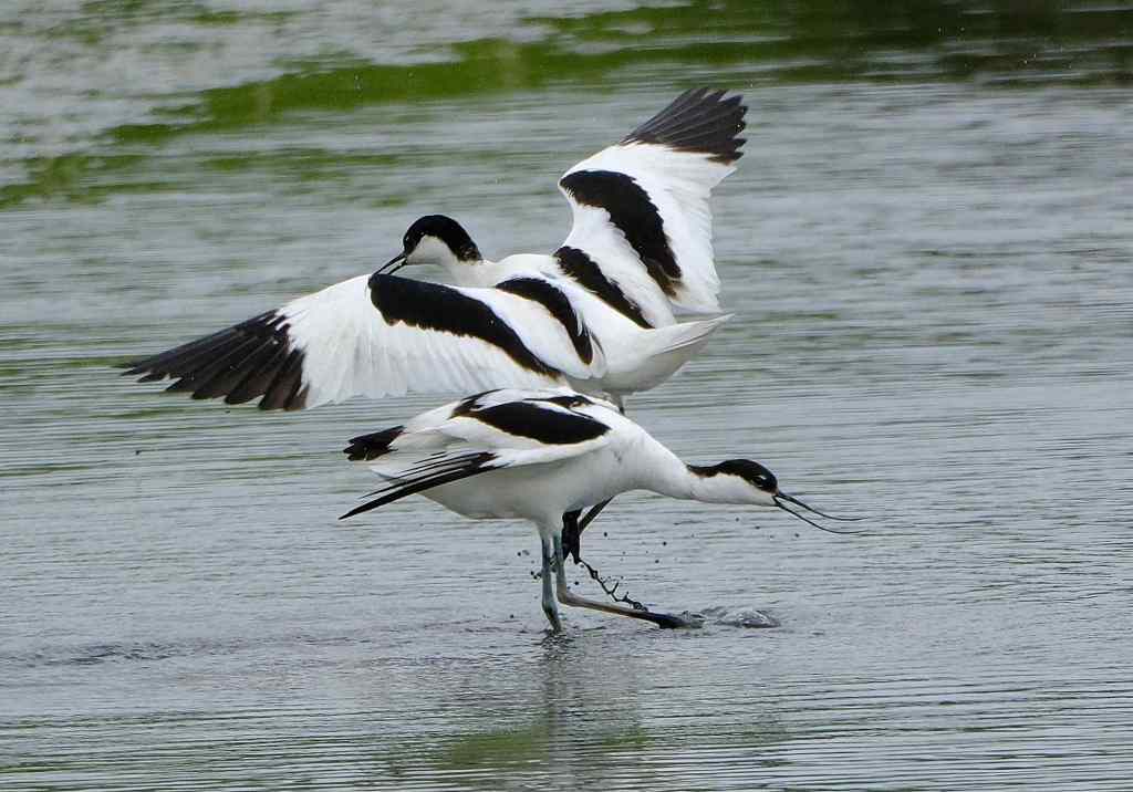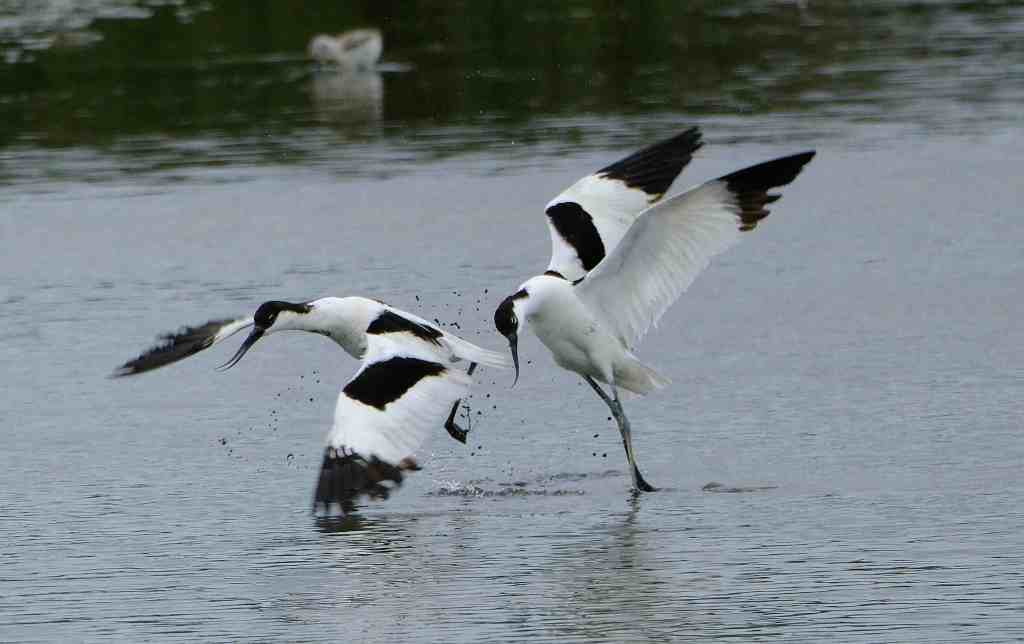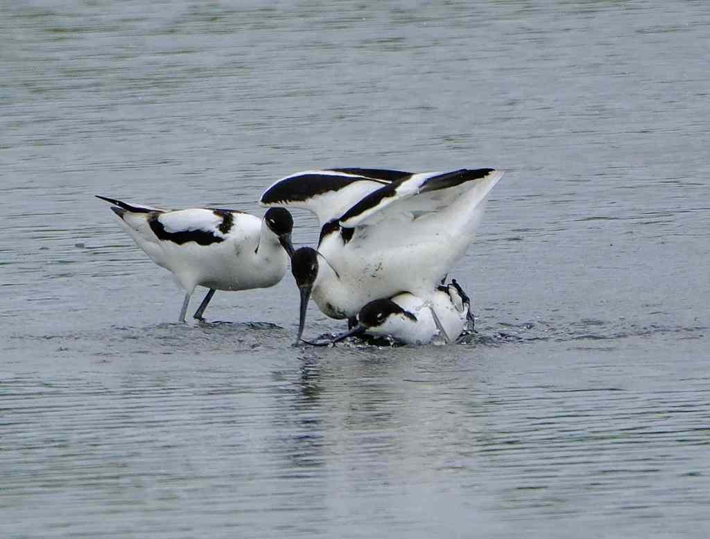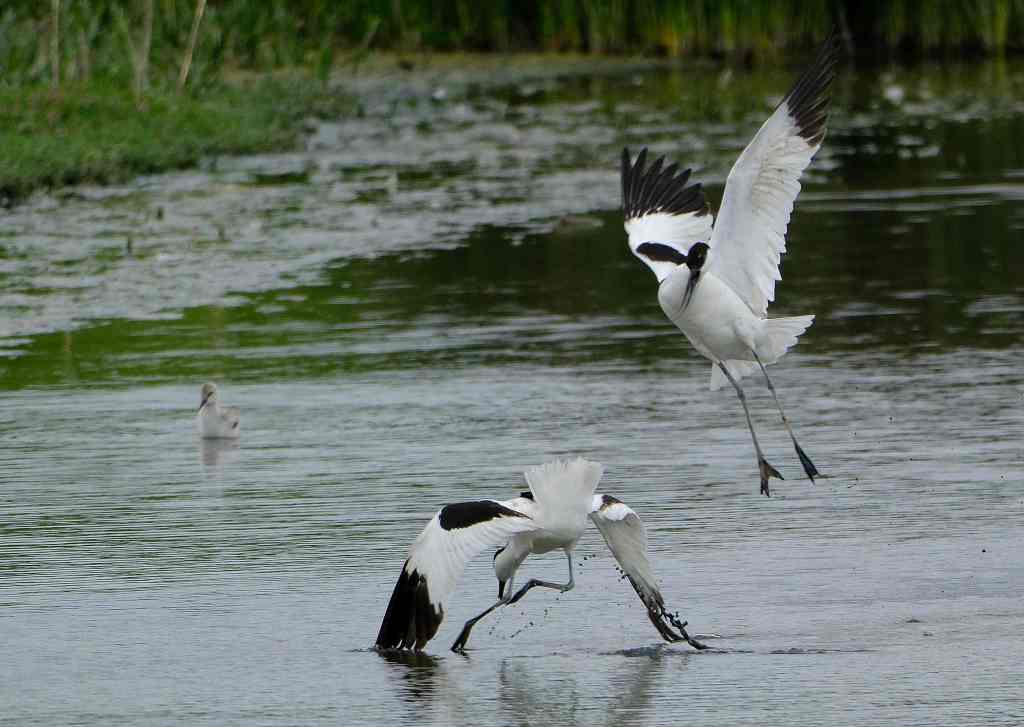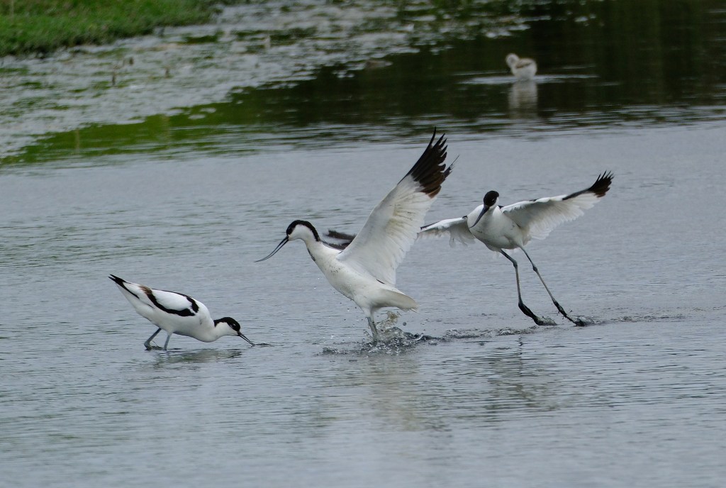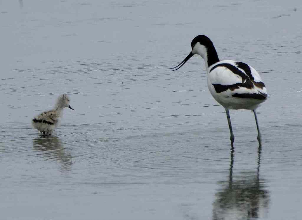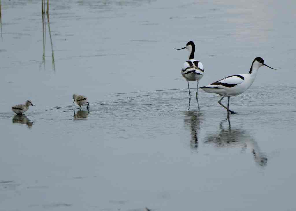Avocet families at Titchfield Haven National Nature Reserve. Parent birds chase off anything that gets too close to their chicks, including other Avocets. Yet, the chicks wander far from mum and dad. This makes them fairly easy targets for predators like large gulls and Marsh Harriers.