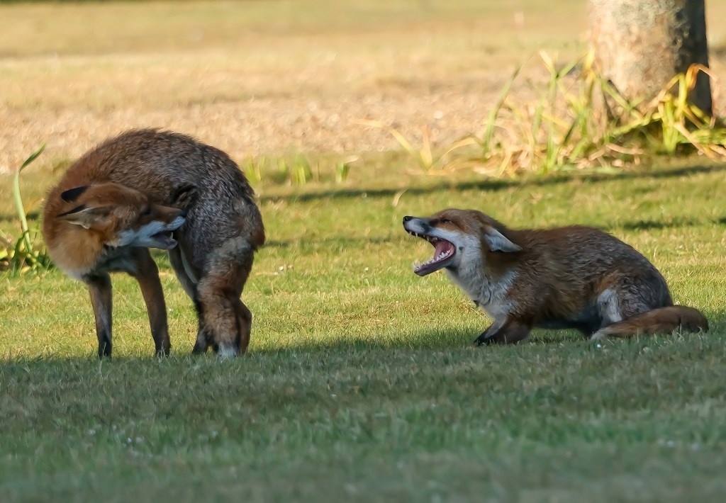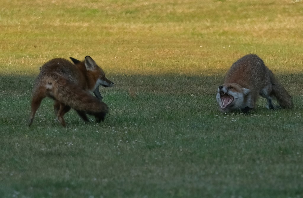 Scrapping foxes: sitting on a lawn with a pack of foxes circling you is rather nerve-racking!