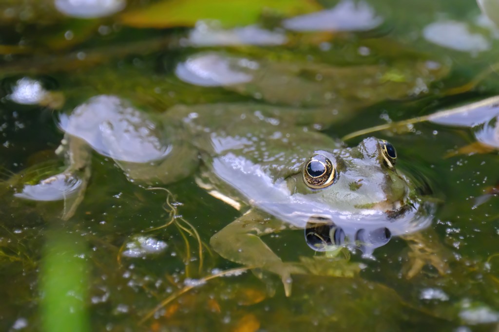 In the UK, the most well-known amphibian is the common frog. It is a regular visitor to garden ponds across the country, and it hibernates in pond mud or under log piles.