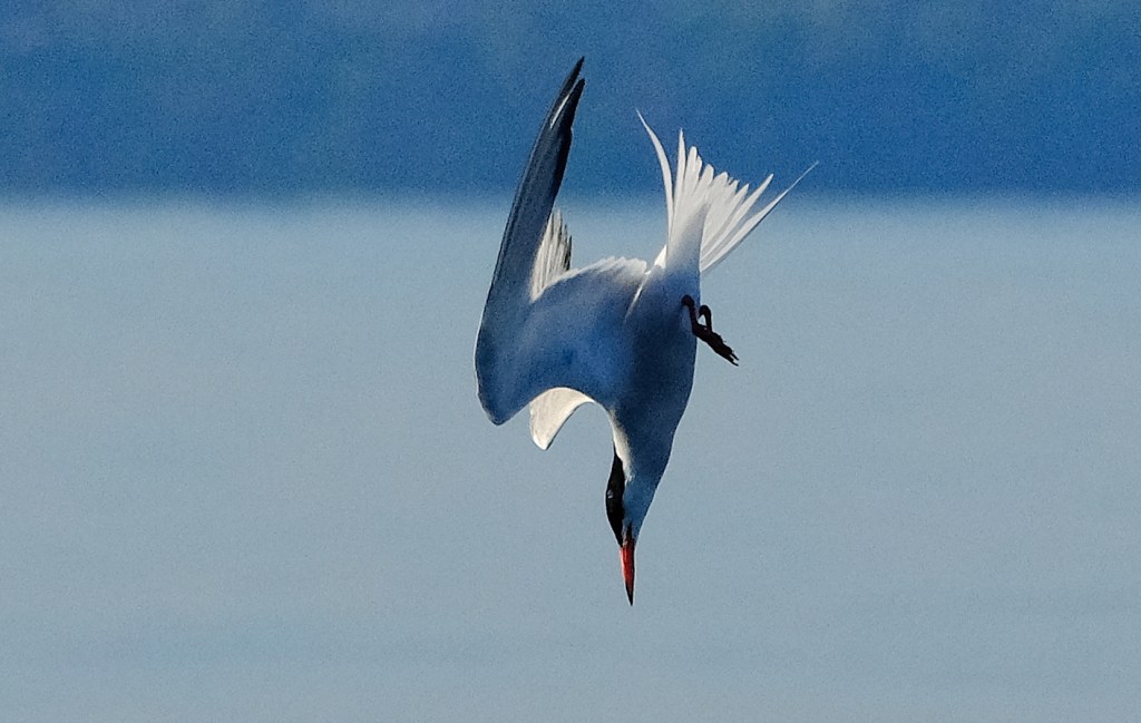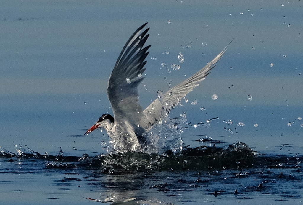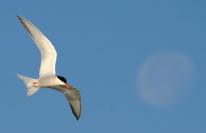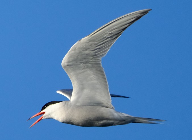 Grey Heron and Great White Egret in competition for the same fishing spot and airspace at Titchfield Haven; after a bit of argy-bargy, they flew off in different directions.
