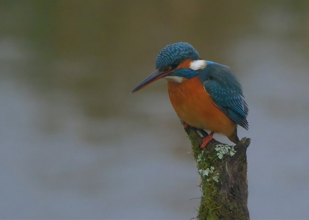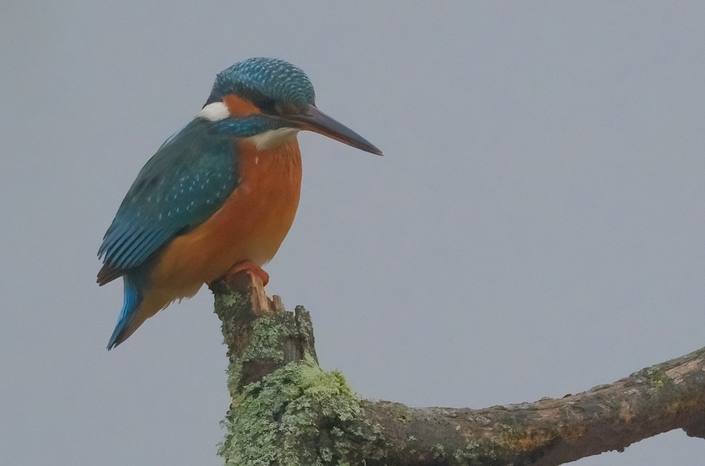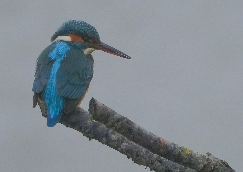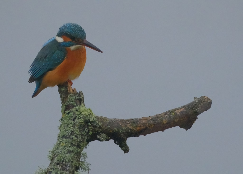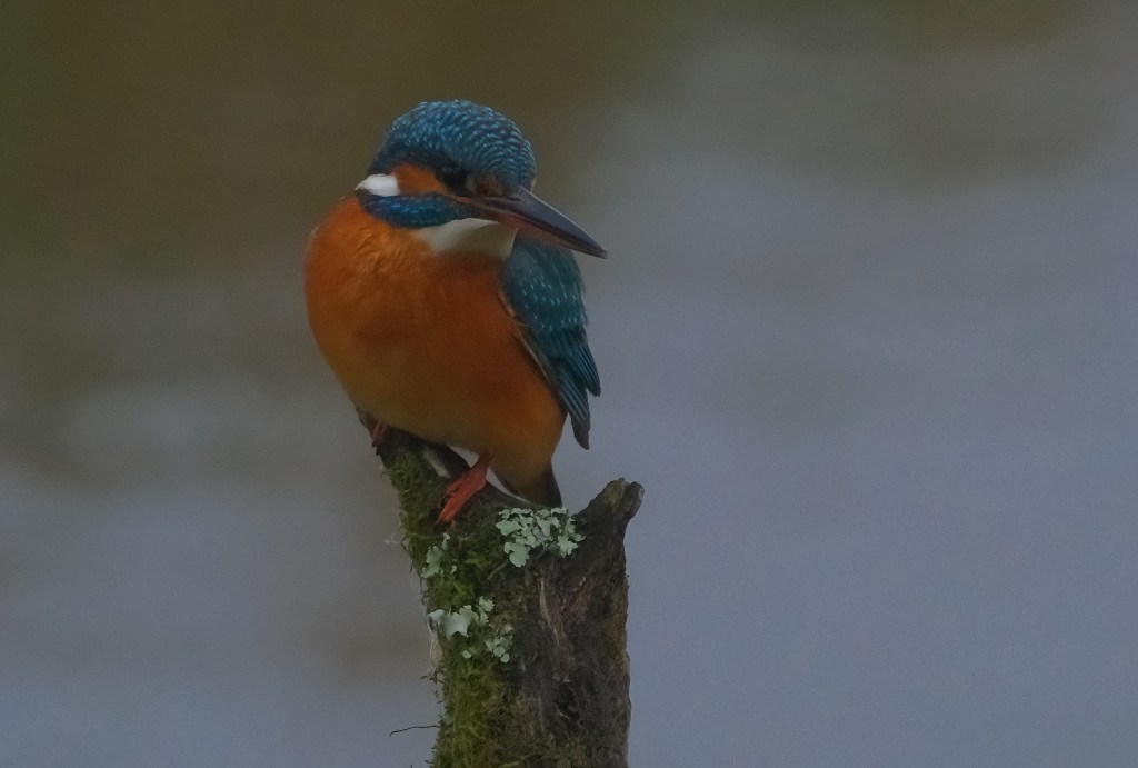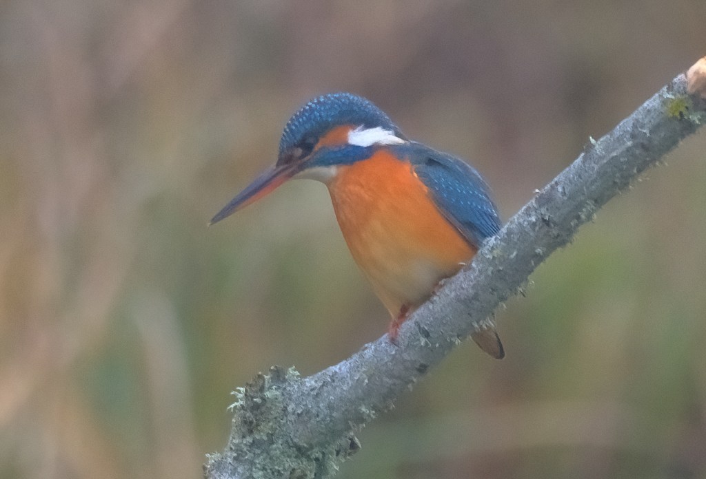 A female Kingfisher at Titchfield Haven National Nature Reserve. The female bird is identified by her orange lower beak. Despite the poor light, I was happy with today’s pictures.