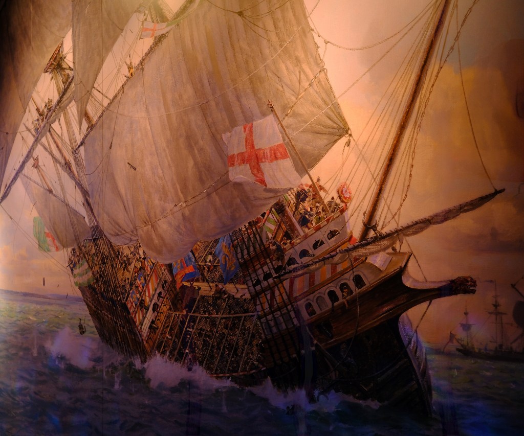 The Mary Rose was Henry VIII, flagship, built in 1511. She famously sank in the Solent in 1545 in full view of Southsea Castle. She took most of her crew of 500 souls with her. She was rediscovered in 1971 and raised in 1982. The part of the wreck that had become buried in the silt survived, and thousands of recovered Tudor artefacts, including personal items and weapons, were recovered.
