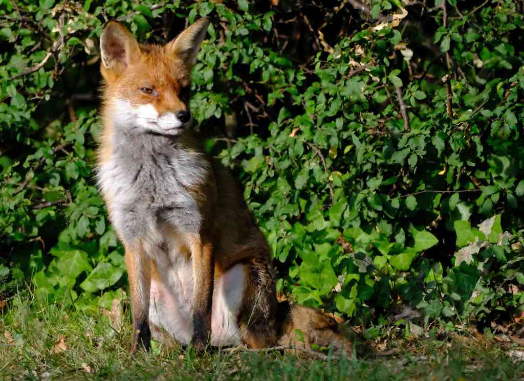 I was wondering if would I see any foxes where I watched them last evening. When I arrived at the location this youngster was sat on the lawn enjoying the evening sunshine. Soon others came out of the adjacent woodland.